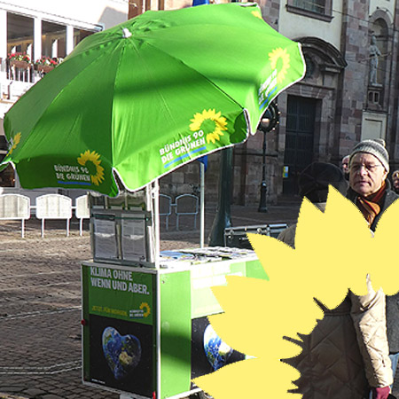 Mit anderen engagierten Unterstützer:innen gehen wir von Tür zu Tür, sprechen mit den Bürger:innen und überzeugen sie von unseren grünen Ideen.